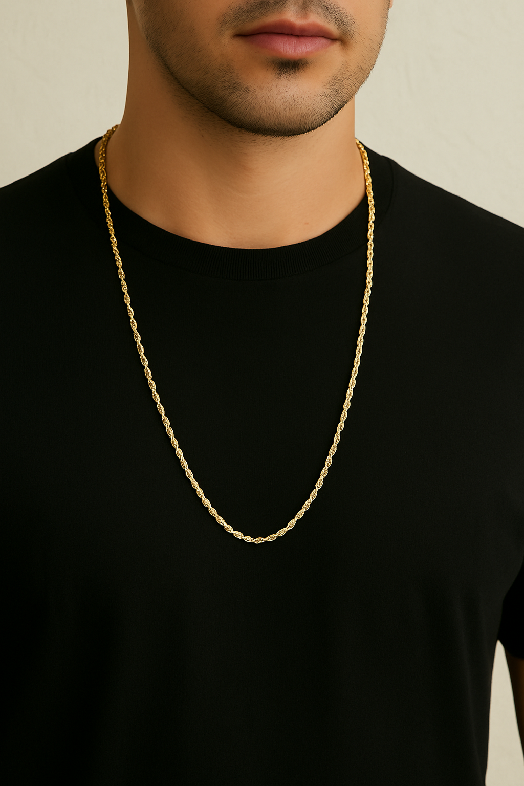 Cadena Torsal Italiana 75cm con Baño de Oro 18K